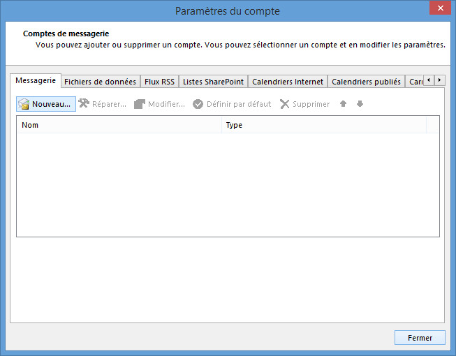 Assurez-vous que le type de compte est IMAP.