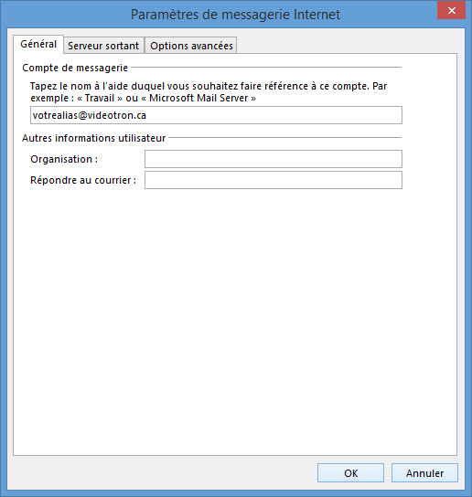 Dans le champ Serveur de courrier sortant (SMTP) : indiquez smtp.votrenomdedomaine.com en minuscules et sans accent.