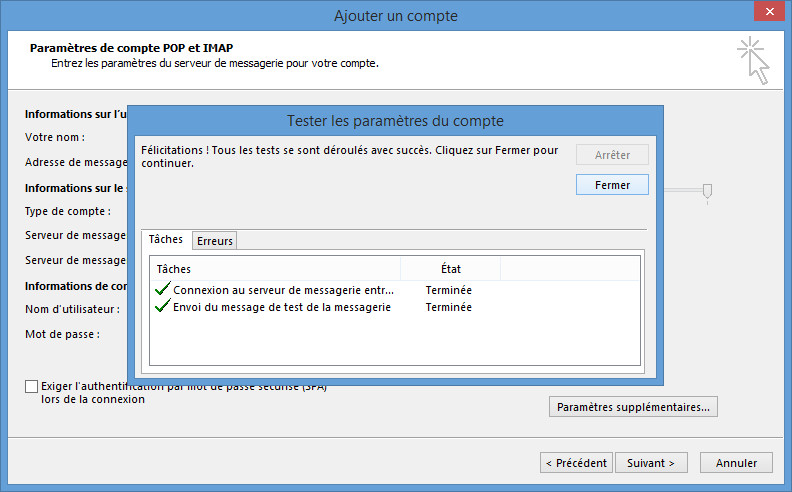 La configuration est terminée.Cliquez sur Terminer.
