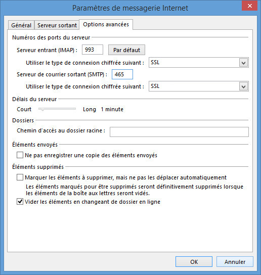 - Changez le port du Serveur de courrier sortant (SMTP) pour 465.